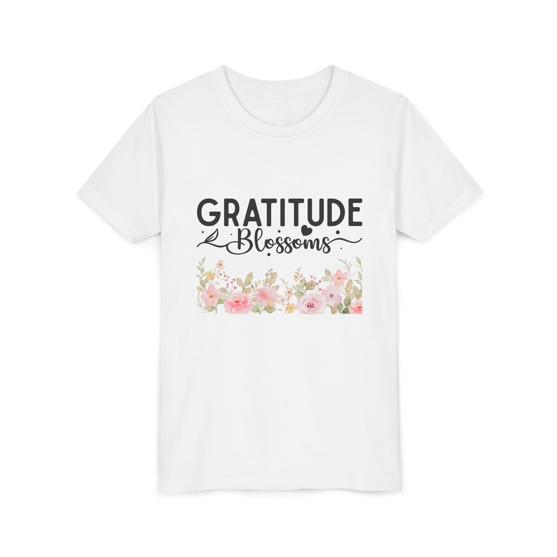 Gratitude Blossoms Youth Tee — Floral Inspirational Kids Shirt